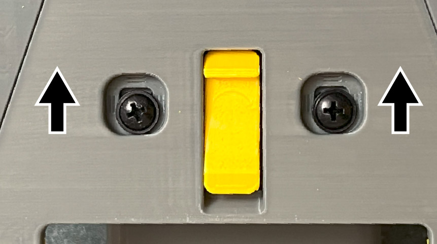 To adjustment the plate magazine, first unscrew the two large screws that secure the magazine tray to the magazine base.