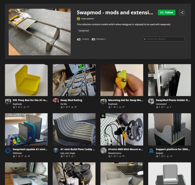 There is also a second collection containing famous third party models, where a swapmod-compatible profile were uploaded. Means if you want using one of these mods with swapmod, you need to look for “swapmod-compatible” printing profile.