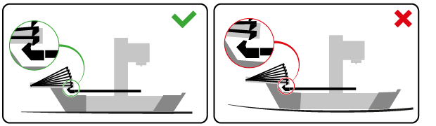 Please make sure that your system (printer and swapmod) is placed on a flat surface. This is very important for the correct operation of the swapmod add-on. As the magazine and ejector units are not firmly mounted to the housing of the printer, their relative heights will vary greatly depending on the surface on which they are placed. There is a margin of tolerance, but it is important to remember that uneven surfaces can cause problems during the loading and unloading process. Here is an illustration of how a concave shelf can affect the setup.
